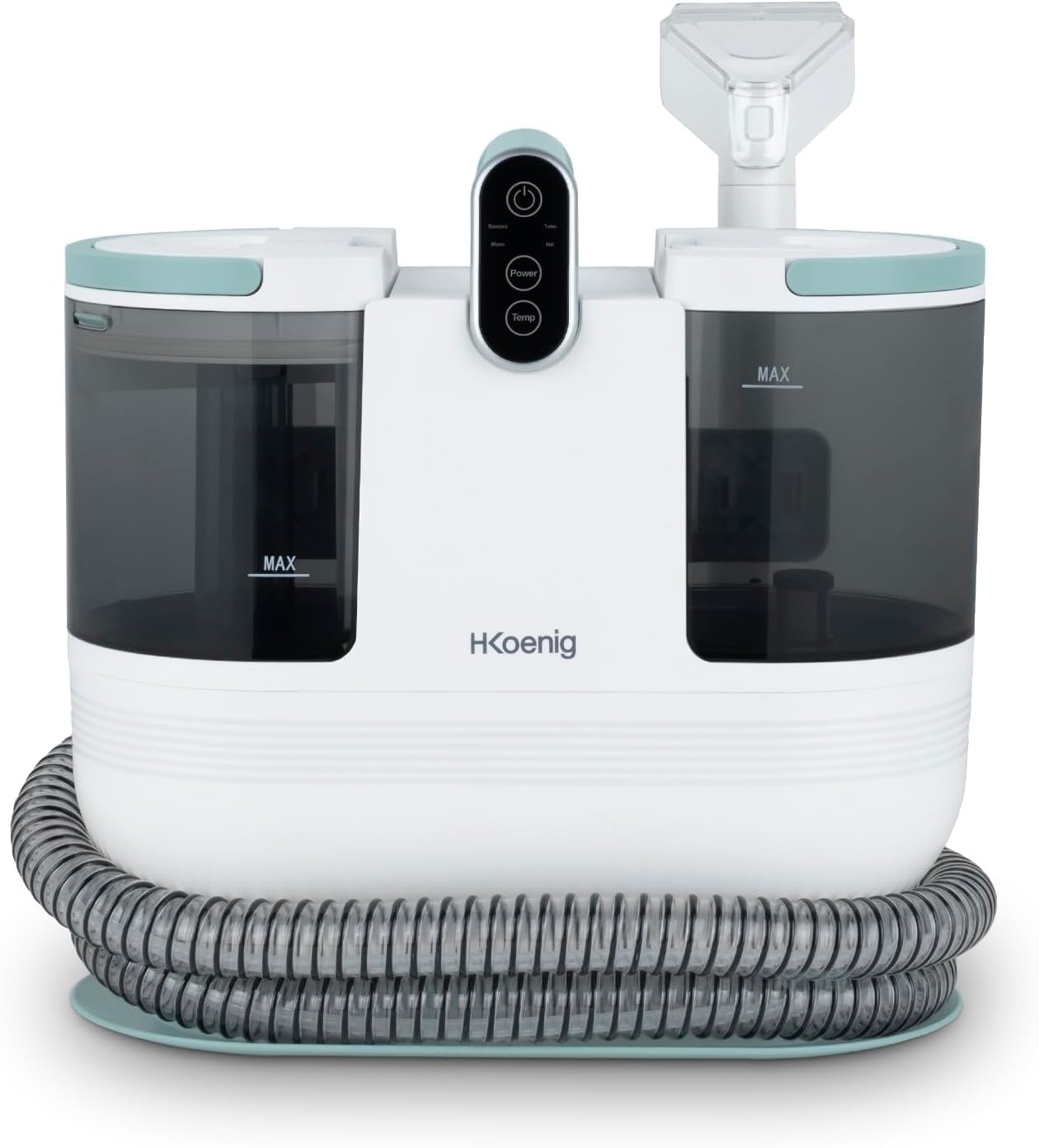 H.Koenig TWT88, pulitore tessile a mano con acqua calda, doppio serbatoio 1600 ml e 950 ml, flusso d'acqua 250 ml/min, temperatura fino a 60 °C, 2 livelli di aspirazione, 1200 W